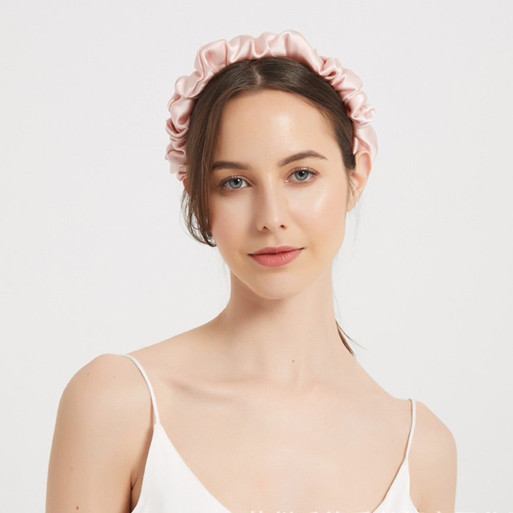 100% Mulberry Silk Ruffled Headband Crown